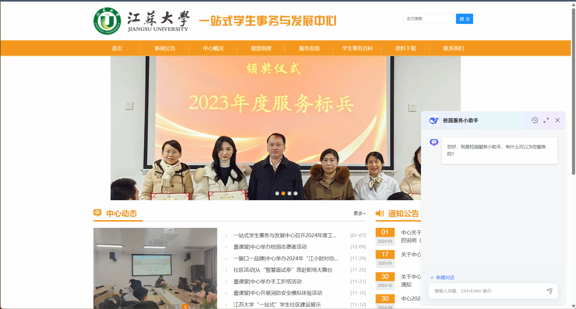 “校園服務小助手”已全面接入一站式學生事務與發展中心、數據與信息化處等部門網站,為師生提供更加便捷、智能的校園服務體驗。