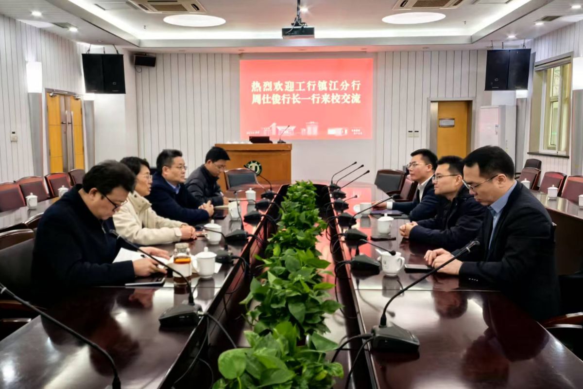 3月13日,工行鎮江分行行長周仕俊、副行長王正華一行來校交流。校長邢衛紅、副校長楊道建接待了周仕俊一行。