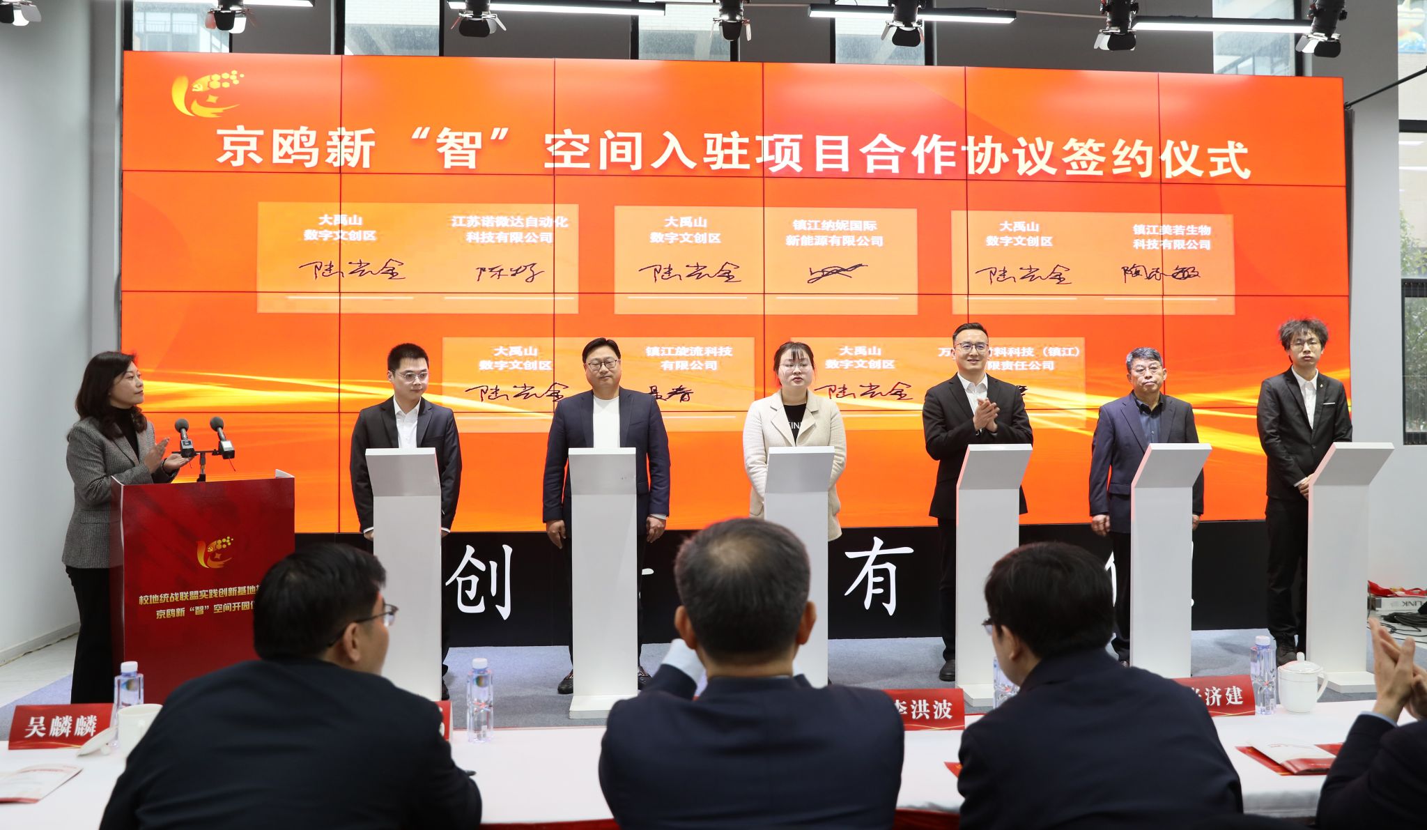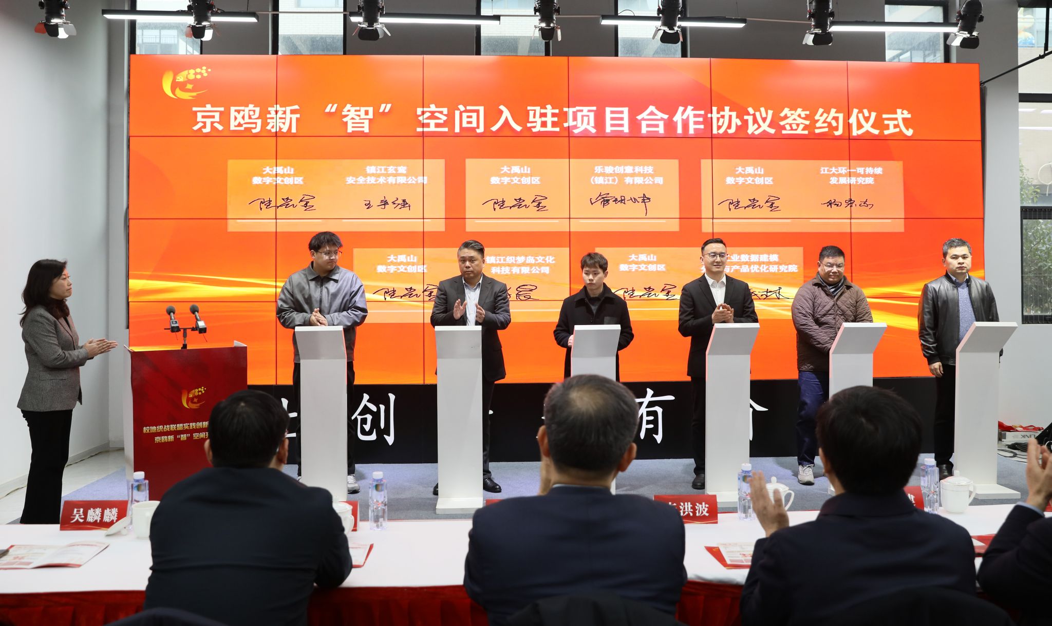 教務(wù)處、藝術(shù)學(xué)院、計(jì)算機(jī)學(xué)院、汽車工程研究院與大禹山數(shù)字文創(chuàng)區(qū)簽訂校地創(chuàng)新合作協(xié)議,學(xué)校10名統(tǒng)戰(zhàn)成員負(fù)責(zé)的項(xiàng)目簽約入駐京鷗新“智”空間。