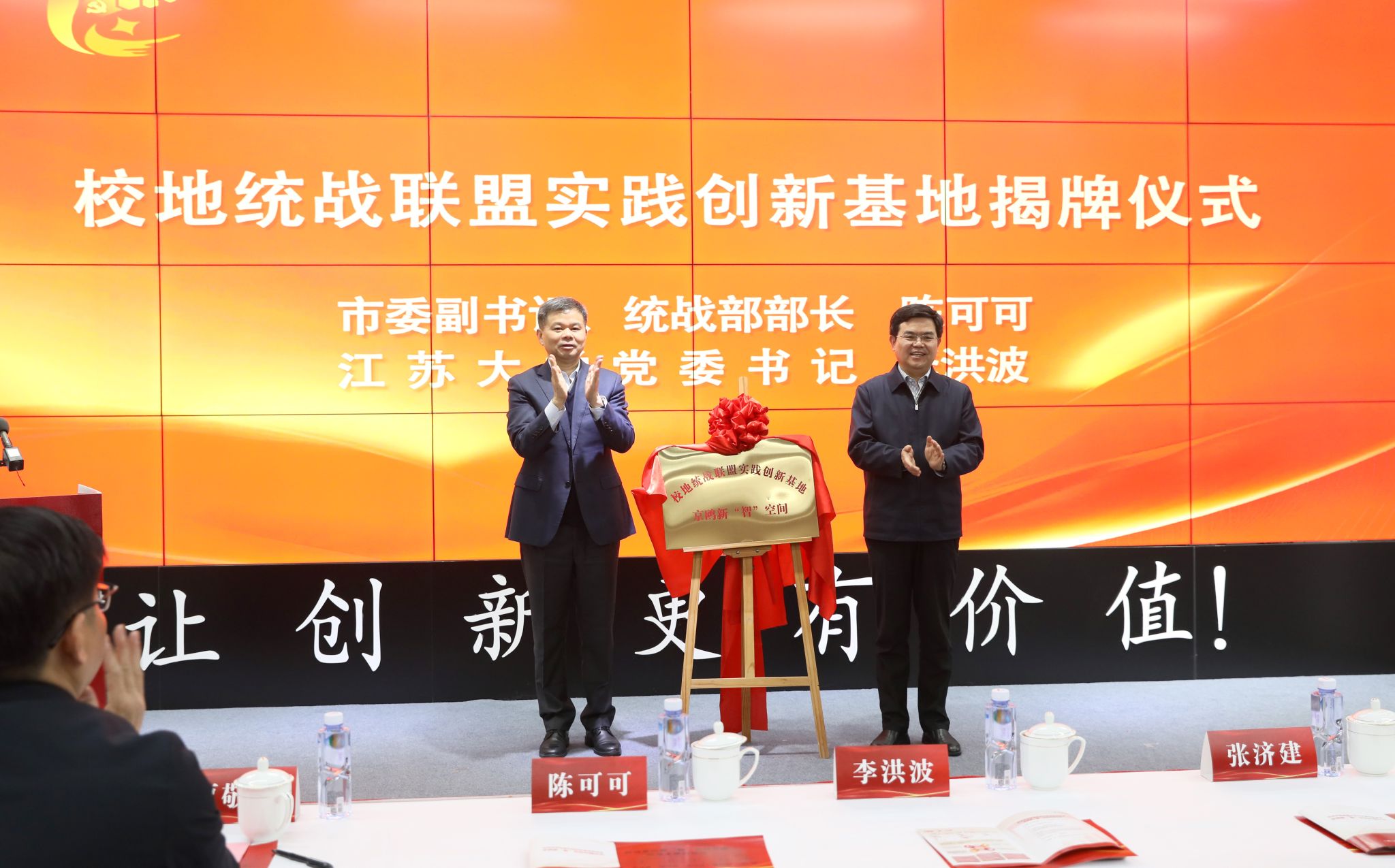 3月13日,江蘇大學(xué)與京口區(qū)校地統(tǒng)戰(zhàn)聯(lián)盟實(shí)踐創(chuàng)新基地揭牌暨京鷗新“智”空間開園儀式在大禹山智匯科技中心舉行。市委副書記、市委統(tǒng)戰(zhàn)部部長(zhǎng)陳可可,校黨委書記李洪波,校黨委副書記張濟(jì)建,京口區(qū)委書記賈敬遠(yuǎn),市委統(tǒng)戰(zhàn)部常務(wù)副部長(zhǎng)、市社會(huì)主義學(xué)院院長(zhǎng)石捷,校黨委常委、宣傳部部長(zhǎng)、統(tǒng)戰(zhàn)部部長(zhǎng)吳麟麟出席活動(dòng),共同推桿啟動(dòng)京鷗新“智”空間開園。