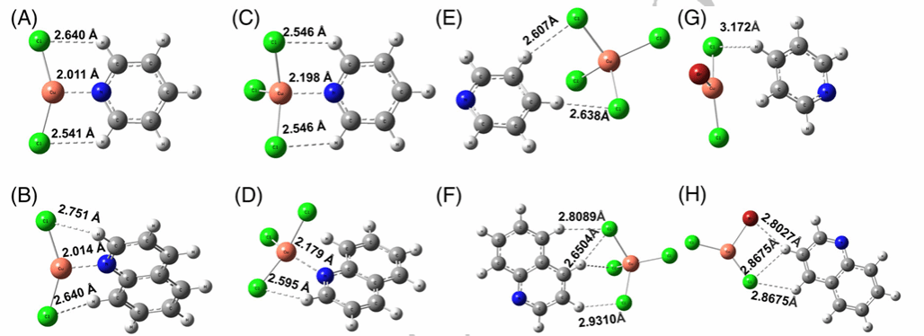 該工作成功制備了一系列銅基離子液體[Bmim]Cl/CuCl2-X,通過改變陰陽離子比例調控陰離子構型并優化其性能。實驗表明,當陰陽離子比為1:1時([Bmim]Cl/CuCl2-1),其展現出卓越的萃取脫氮(EDN)性能,結合拉曼光譜與理論計算發現,銅的未占據軌道以及[CuCl3]-中的氯離子與ONCs中的氮原子之間形成了有效的配位,這種Lewis酸堿相互作用對于實現深度EDN至關重要。該工作不僅提出了一種高效的銅基離子液體用于從燃油中深度去除ONCs,而且還為理解和調控EDN過程中的基本相互作用提供了深入認識。