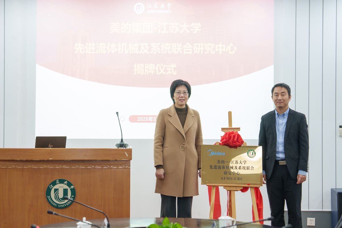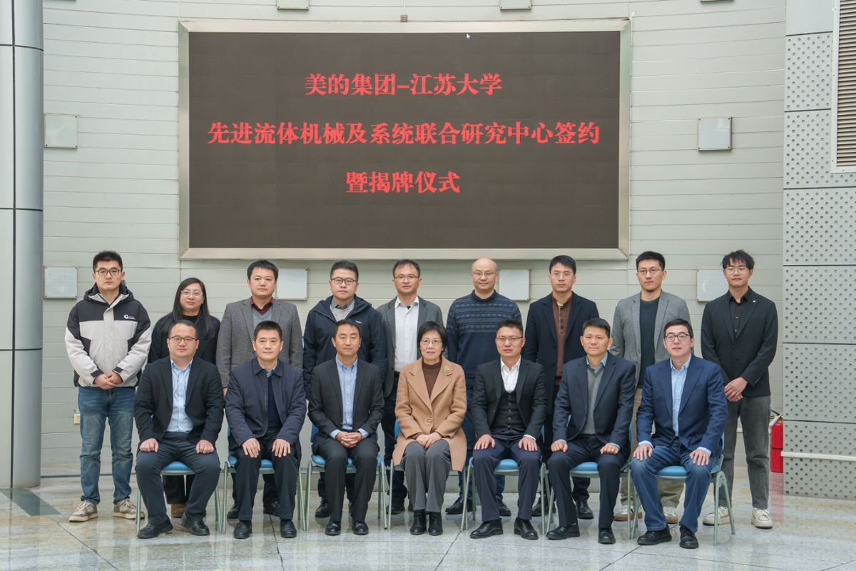 李紅和彭勃共同為美的集團(tuán)—江蘇大學(xué)先進(jìn)流體機(jī)械及系統(tǒng)聯(lián)合研究中心揭牌,美的集團(tuán)李忠華、能源與動(dòng)力工程學(xué)院院長(zhǎng)潘劍鋒代表共建雙方現(xiàn)場(chǎng)簽約。