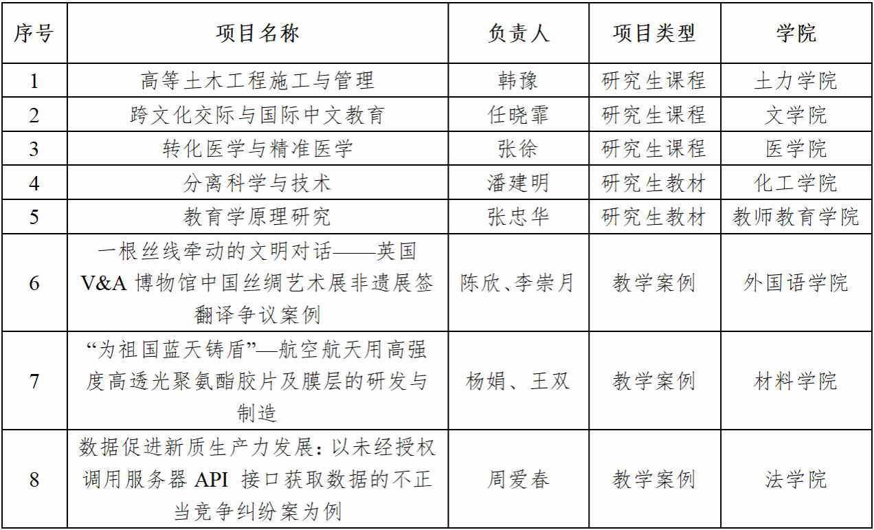 近日,江蘇省教育廳公布了2024年度江蘇省研究生優質教學資源遴選結果,我校共有3門研究生課程、2部研究生教材、3項研究生教學案例入選。