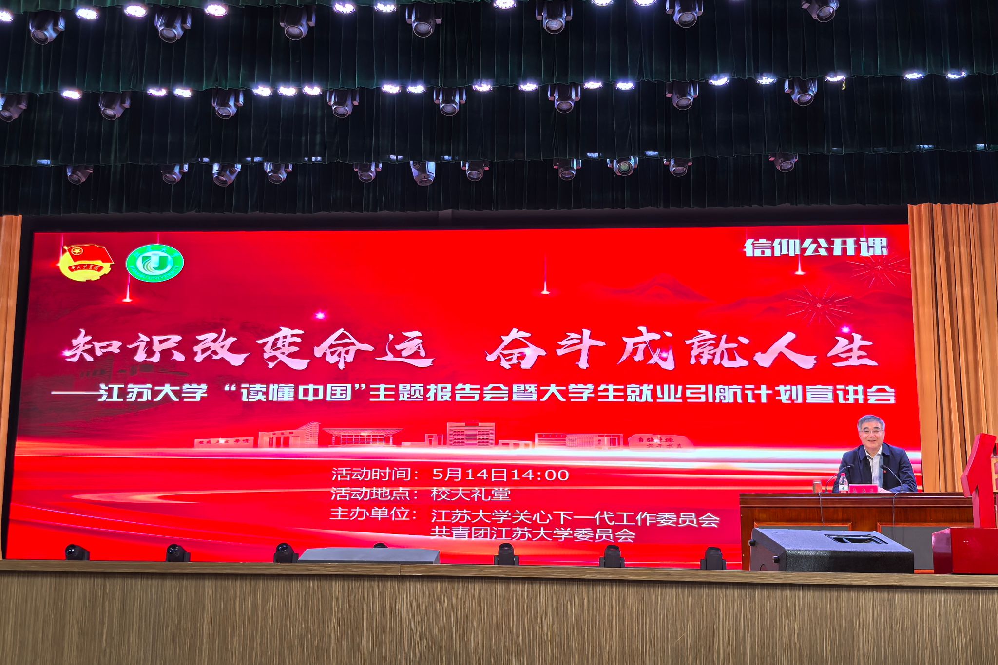 5月14日,“讀懂中國”主題報(bào)告會(huì)暨大學(xué)生就業(yè)引航計(jì)劃宣講會(huì)在校大禮堂舉行。國家水泵及系統(tǒng)工程技術(shù)研究中心主任、江蘇大學(xué)原黨委書記袁壽其擔(dān)任分享嘉賓?;顒?dòng)通過江蘇大學(xué)團(tuán)委視頻號(hào)線上直播,校關(guān)工委、校團(tuán)委相關(guān)老師及各學(xué)院學(xué)生代表等一萬余人參與活動(dòng)。