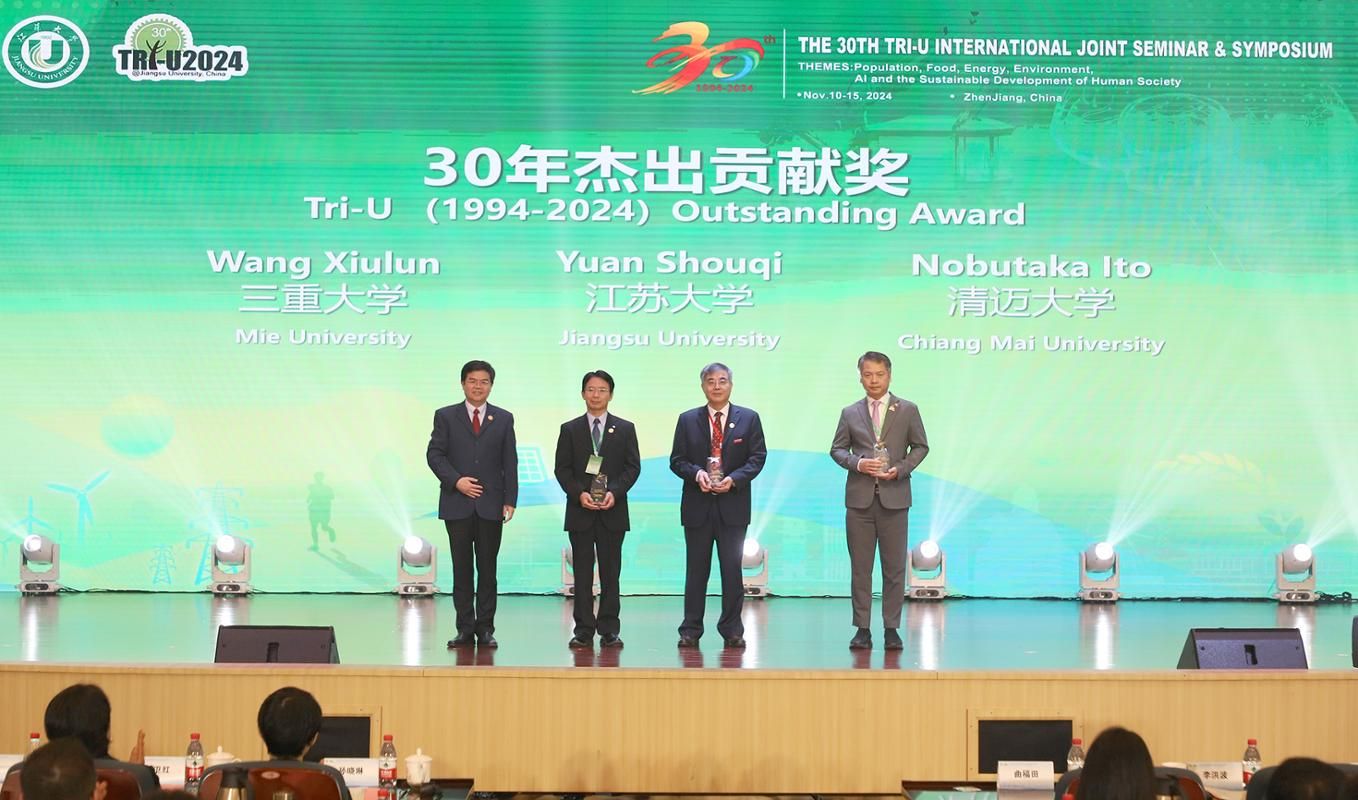 2024年恰逢“三國三校”國際學術研討會發起舉辦30周年。開幕式上,大會主辦方為江蘇大學孫建中、廣西大學郭宇路等頒發“30年發展貢獻獎”,為江蘇大學袁壽其等頒發“30年杰出貢獻獎”,為江蘇大學、清邁大學、三重大學頒發“30年優秀組織獎”。