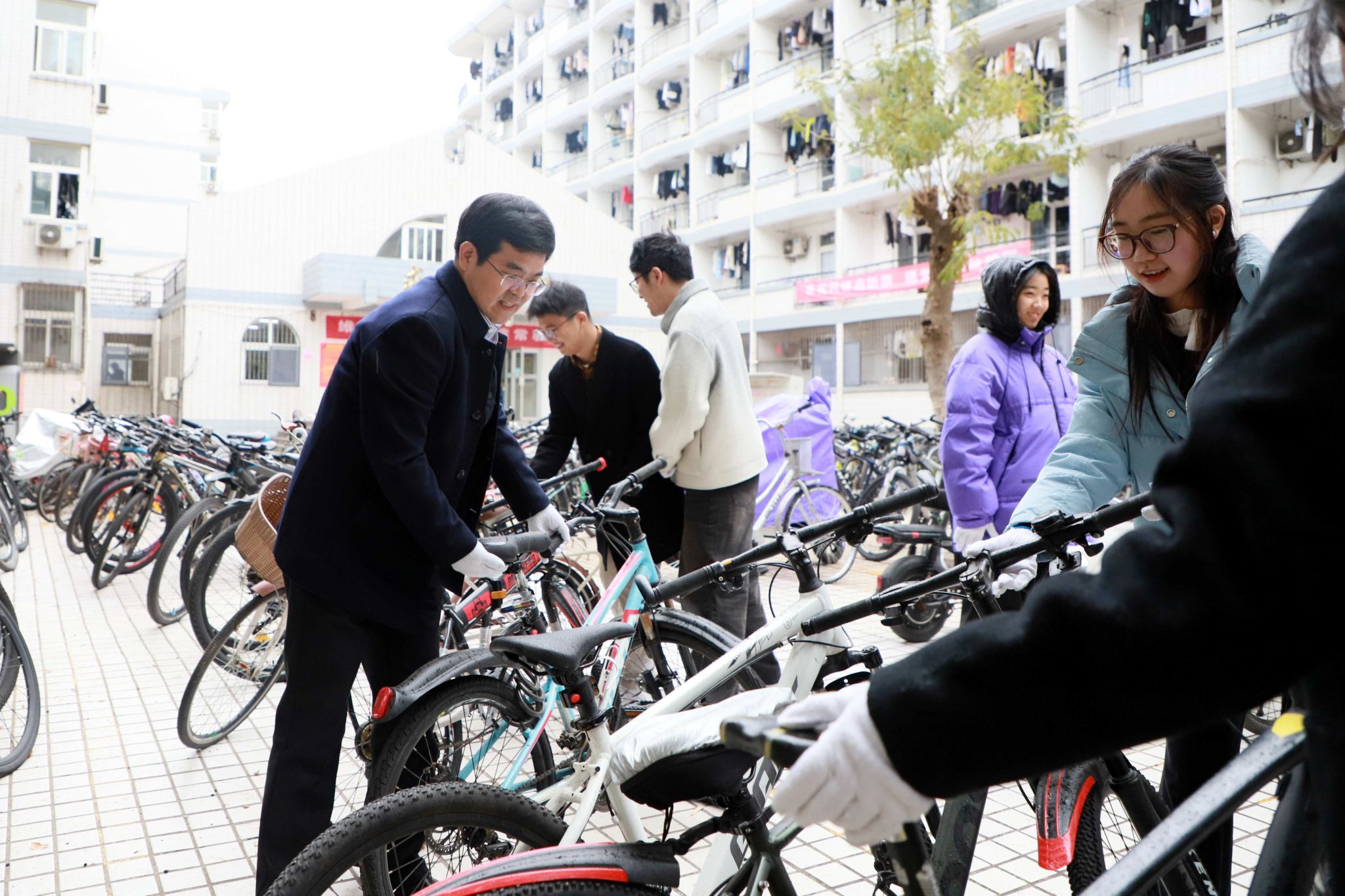 活動后,李洪波向學生代表贈送了文創紀念品,并與同學們一起參加了社區自行車整理、路面清掃等校園志愿服務活動。(管理學院)