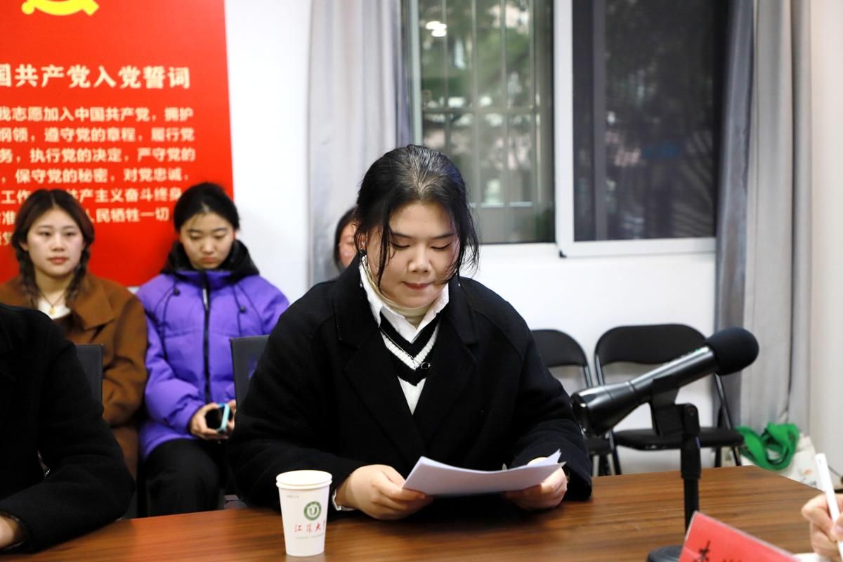 活動中,管理學院本科生黨員俞倩霞分享了自己的成長經歷,匯報了自己經過不斷努力已成功保研至上海大學,也介紹了支部的組織生活情況。管理學院物流2202班班長杜鈺靈表示,班級同學目標明確,在班風學風建設、科研比賽、創新能力等方面均有所突破,超過半數的同學都在為考研、考公或就業做準備,班風學風良好。財經學院金融2102班陳楚汶匯報了宿舍發展情況,并介紹了自己努力參加科研比賽、社會實踐和志愿服務經歷,現已成功保研至中國海洋大學。