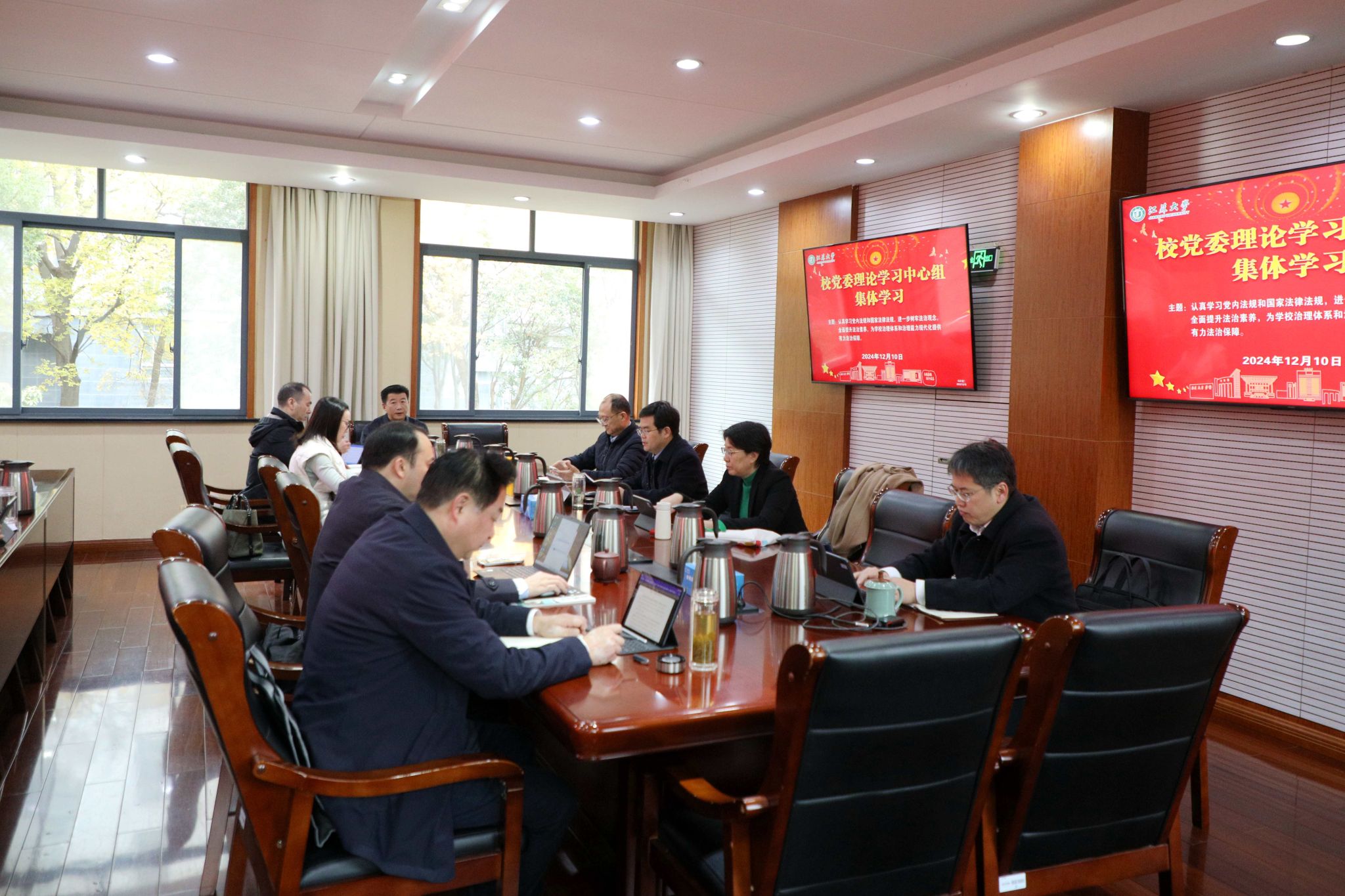 12月10日,校黨委理論學習中心組在行政一號樓201會議室圍繞學習黨內法規和國家法律法規開展集體學習。在校校黨委理論學習中心組成員參加學習,集體學習由校黨委書記李洪波主持。