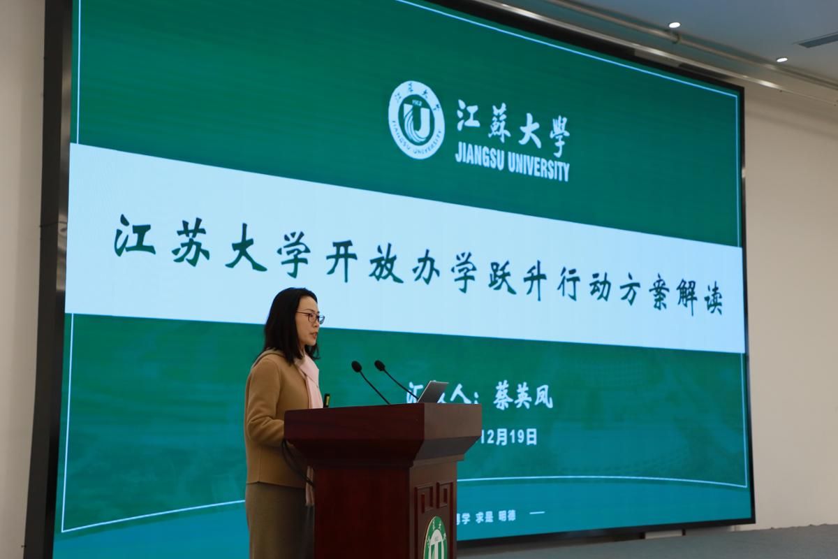蔡英鳳從指導(dǎo)思想、總體目標、任務(wù)舉措和保障實施等四個方面對《江蘇大學(xué)開放辦學(xué)躍升行動方案》內(nèi)容進行了解讀,并對學(xué)校重點推進的高水平對外交流合作任務(wù)和舉措進行了部署安排。