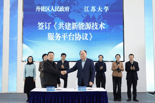 雙方共同為江蘇大學技術轉移中心丹徒分中心揭牌,簽署了《校地合作協議書》《江蘇大學技術轉移中心丹徒分中心合作共建協議》《共建新能源技術服務平臺協議》。