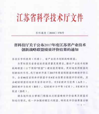日前,江蘇省科學技術廳組織開展了2017年度省級聯盟績效評價工作,在參評的42家省級聯盟中5家被評為優秀(A類)。江蘇省先進流體工程裝備產業技術創新戰略聯盟榮獲優秀(A類)。