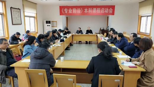 1月8日,學校在教務處大會議室召開《專業前沿》本科課程啟動會,校長顏曉紅和來自相關單位的20余位二級教授、相關職能部門負責人參加會議,會議由教務處處長王謙主持。