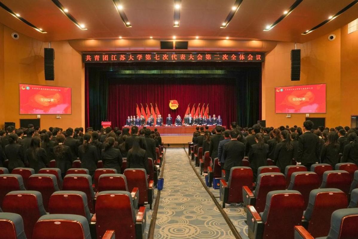 大會開幕前,全體與會人員唱國歌、團歌,共同觀看了江蘇大學共青團工作巡禮片(2021-2025年)。江蘇大學附屬學校少先隊員代表獻詞。