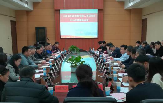 1月19日,江蘇省高教學會外國文教專家工作研究會2018年理事會在我校召開,校黨委書記袁壽其、省外國專家局局長楊小平、省教育廳國際合作與交流處處長賀興初等出席會議并講話。省教育廳、省外專局、省公安廳、南京市公安局、南京大學、東南大學等30家理事單位領導和專家蒞臨會議,會議由副校長趙玉濤主持。