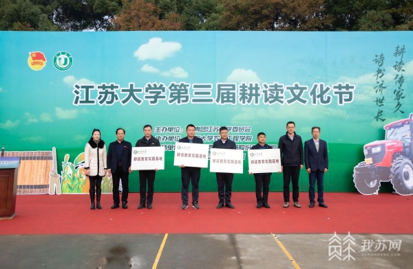 本屆耕讀文化節開幕式上,江蘇大學還為句容市白兔鎮致富果業專業合作社、江蘇農林職業技術學院江蘇茶博園、揚中市新壩鎮立新村、聯合村授予了“耕讀教育實踐基地”銅牌。