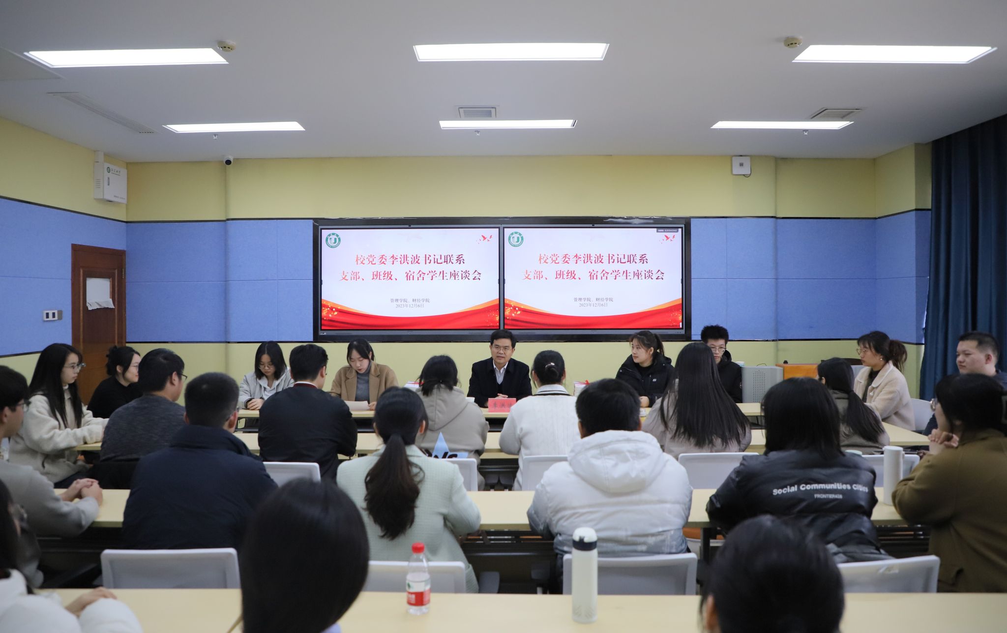 初冬校園,氣溫驟降。12月6日,江蘇大學(xué)黨委書記李洪波走進(jìn)所聯(lián)系的班級、黨支部、寢室同學(xué)中間,通過參與學(xué)生班會、師生座談、與聯(lián)系學(xué)院學(xué)生共同為樹木刷白等方式,與學(xué)生面對面,共話大學(xué)生活。